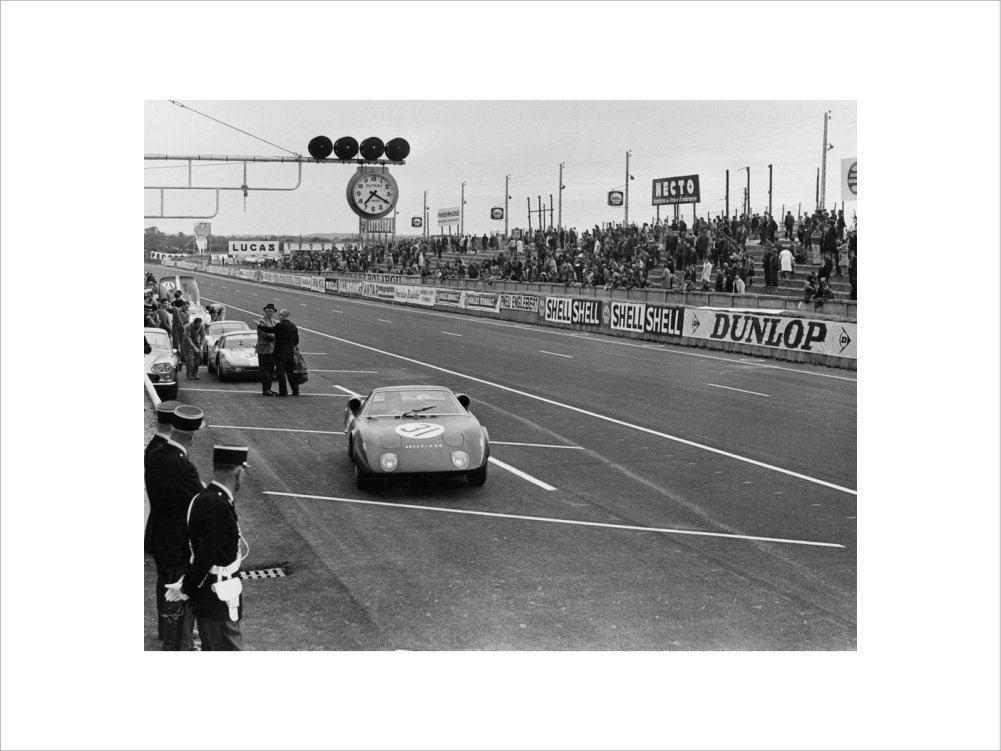 Rover BRM gas turbine car 1965. Competition number 31 in the pits during the 1965 Le Mans 24 hour race. Drivers Graham Hill and Jackie Stewart put in a good performance finishing 10th overall. This car is also on display in the British Motor Museum's collection.
