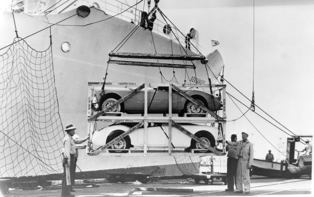 The MGA represented a complete styling break from MG's earlier sports cars and was particularly popular as an export car, especially to the US as we can see MGAs being loaded onto a ship in this photograph bound for America.