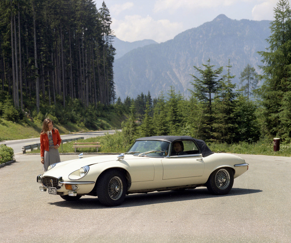 The Jaguar E-Type Series 3 was introduced in 1971 with a new engine and updated parts. This photoshoot took place in Austria, taking advantage of the impressive scenery to reflect the beauty of the vehicle. It is no surprise that Enzo Ferrari deemed the E-Type 'the most beautiful car ever made'.