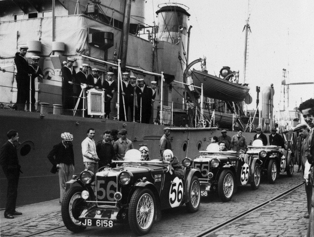 The all-female 1935 MG works team in MG PA Midgets on their way to Le Mans.