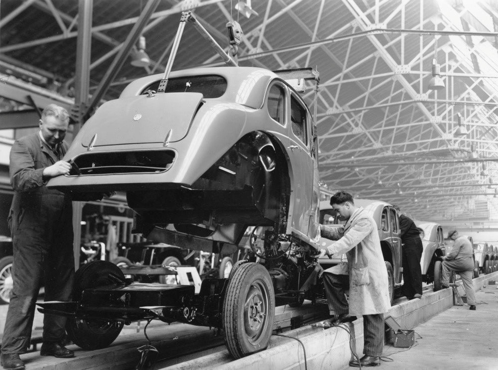 On the Assembly line at the MG Factory in Abingdon 1947.